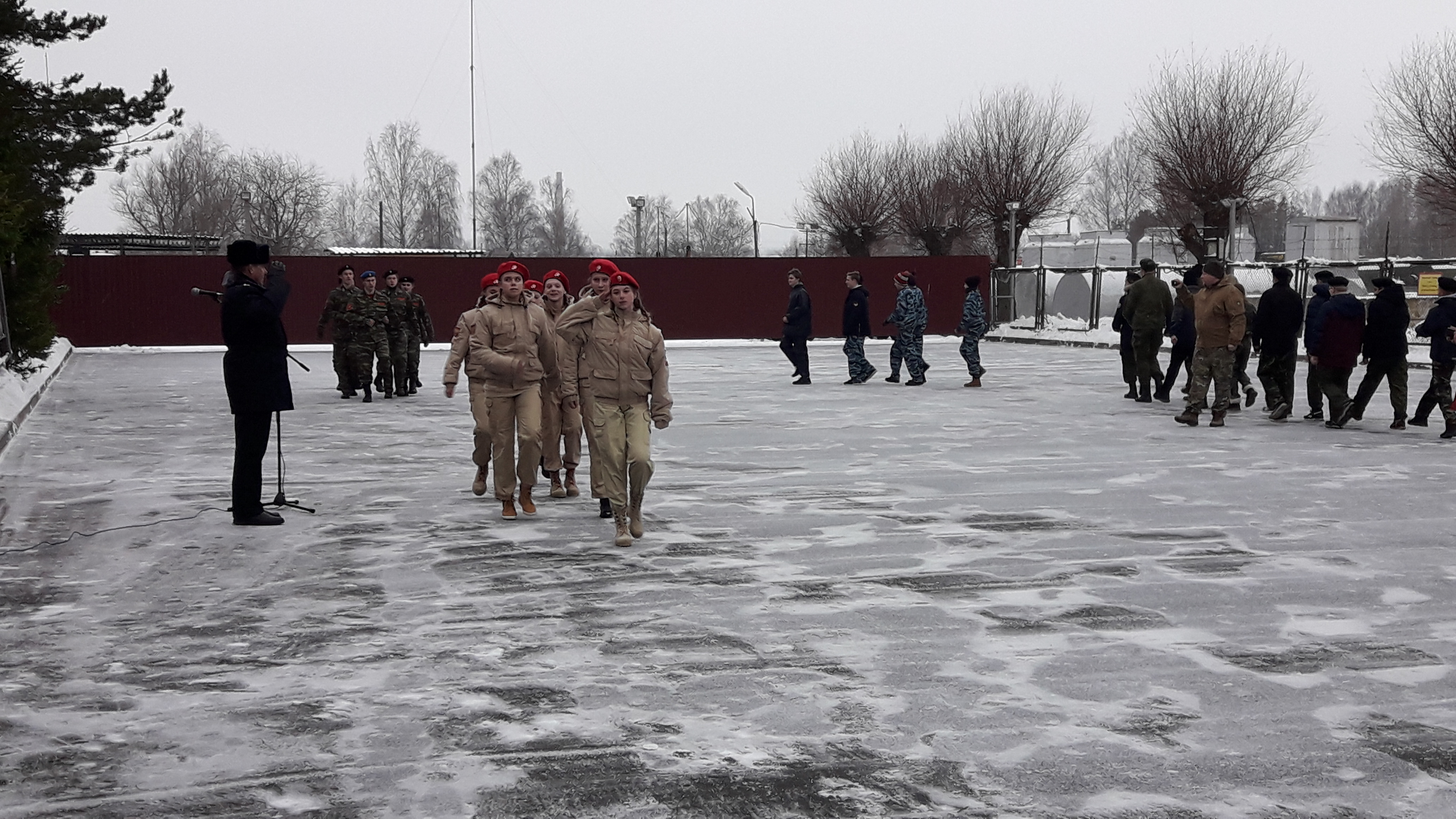 На торжественном построении на плацу воинской части состоялось открытие соревнований. Право поднять флаг предоставлено победителям соревнований 2017 года – команде МОУ гимназия №8 им.Л.М.Марасиновой.
